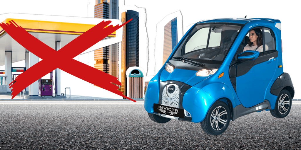 Hoy pasa por nuestras manos un «cochazo». Bueno; es un coche, lo de «cochazo» lo digo en plan mitad jocoso y mitad verídico. ¿Por qué digo lo de «cochazo»?. Pues realmente para lo que está diseñado, podríamos considerarlo como tal, ya que existen pocos rivales directos al Invicta Electric D2S y como vehículo urbano no tiene parangón. Es una solución notable para circular por nuestras atestadas ciudades. Inteligente, con un equipo de serie muy atractivo y dotado, muy compacto, divertido, personalizable y eléctrico 100%. ¿Se os ocurren mayores virtudes para un vehículo destinado a las grandes urbes? Invicta Electric es una marca novedosa que comercializa desde patinetes, motocicletas o cuadriciclos, pasando por su producto estrella, el que ha pasado por nuestra criba, el Invicta Electric D2S. Bueno; también cuenta con una gama de vehículos comerciales de «último kilómetro», pero eso es «harina de otro costal». Todos son eléctricos y tienen ese aire urbano, tan anhelado por muchos. El D2S es un urbano de referencia y no pertenece a ningún gigante automovilístico. En realidad es una versión europeizada de un vehículo chino con las mismas características llamado Zhidou, pero que ha sido remozado y rebautizado en Italia para el resto de Europa. Sus medidas son muy recogidas, ideal para esos trayectos en ciudad y poder aparcar casi en cualquier lugar. Con 2,8 metros de longitud, 1,5 de anchura y 1,55 de altura, se configura como todo un urbanita, aunque a simple vista, parece más un coche que se conduce sin carnet que realmente lo que es. No os preocupéis; Invicta Electric también tiene uno de esos modelos llamado Eidola, con un atractivo inusitado para rodar por la urbe, con formas muy compactas y aprovechables, divertido, con una apariencia más proporcionada y que podemos adquirir a partir de los 16 años. Pero el D2S es un auténtico coche eléctrico. De hecho; es el coche eléctrico más barato que se puede comprar y, con ayudas el Plan Moves III y demás; se nos queda en unos atractivos 10.500 euros, más o menos. Su frontal destaca, sobre todo por su parrilla cromada. Tiene un pequeño aire a los Aston Martin de antaño y viste muy bien su imagen, aunque cualquier parecido con la realidad es mera coincidencia. No necesita tanta refrigeración al ser eléctrico, pero es un guiño que le da mayor visibilidad al conjunto. Sus faros principales son halógenos, aunque nos ofrecen una gran visibilidad en horas nocturnas y tienen una característica forma ovoide. En el paragolpes tiene incorporadas las luces diurnas y el capó delantero es corto y está bastante inclinado, por lo que, además de ofrecernos una gran visibilidad, tenemos bastante claros los límites del vehículo. Por cierto, me llamó mucho la atención su peso, tanto, que al levantarlo para hacer fotos del motor eléctrico me quedé con él en las manos. No, no era un fallo garrafal, sino que es una pieza de plástico desmontable de una manera muy sencilla para tener una mayor accesibilidad al motor. No os asustéis. La visión lateral es bastante curiosa y es en esa percepción en la que podemos pensar que es un coche que se conduce sin carnet. Eso es debido a su recortada longitud y su elevada altura al respecto que parece desproporcionada. Nos llama mucho la atención la corta distancia entre ejes y las ruedas estrechas situadas en los extremos, que montan unas vistosas llantas de 14″ delante y 15″ detrás. No es necesario más, ya que con este coche tampoco es que vayamos a ir a velocidades estratosféricas. En la zaga nos encontramos con trazos muy verticales, con una gran luneta que nos ayuda a que tengamos una gran visibilidad y buenas referencias respecto a donde está el final del conjunto, unos pilotos grandes y un paragolpes profuso que incluye la luz central antiniebla y en el que se distinguen perfectamente los sensores de aparcamiento traseros. El único atisbo de dinamismo que observamos en un pequeño alerón situado por encima de la luna. También nos encontramos algún atisbo de deportividad y personalización en los retrovisores, que además de incorporar luces intermitentes, están pintados en diferente color al del resto de la carrocería. Y es que Invicta Electric, además de tener una gama muy fresca, urbana y divertida, también dispone de numerosos vinilos para que nuestro medio de locomoción (eléctrico en movimiento) sea único e irrepetible. Por supuesto el D2S no es una excepción. Abrimos el portón del maletero y nos encontramos un cubículo suficiente para nuestros quehaceres diarios, aunque el borde nos queda un poco elevado y los cables de recarga ocupan cierto espacio. No obstante, se puede aprovechar bastante y ese maletero es profundo y abarca toda la parte posterior, ya que en esa zona no cuenta con plazas. Sí, habéis leído bien. El Invicta Electric D2S es un auténtico biplaza. Abrimos las puertas y nos encontramos con un habitáculo de tintes deportivos (aunque no lo sea), con unos preciosos y aparentes asientos revestidos en cuero y ante con los reposacabezas integrados. Sujetan bien el cuerpo y son muy confortables, aunque tienen un efecto más visual que efectivo, ya que el D2S es un coche urbanita y no es necesario que los asientos nos sujeten extremadamente bien en curva. Aún así, son muy cómodos y deportivos. Ante nosotros se nos presenta un salpicadero muy atractivo, poco usual en vehículos de esta índole. Vale, es estrecho y tiene pinta de que es plano y no está orientado ligeramente hacia el conductor, aunque no hace falta, precisamente, por sus medidas totales. Todo lo encontramos muy a mano. El volante es multifunción, aunque los botones son un poco duros y toscos de accionar. No es un problema, pero comparado con otro tipo de vehículos es un pequeño detalle que se nota. La dirección era ligera, pero estaba tan asistida que nos hacía corregir ligeramente nuestro giro. Está muy bien para que no nos cueste mucho circular entr